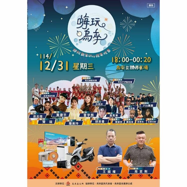 隨著2025年即將進入尾聲,新北市烏來區年度最受矚目的盛事──「114年烏來跨年晚會系列活動」,將於12月31日晚間在烏來區立體停車場盛大登場。活動結合音樂表演、燈光舞台與倒數煙火,不僅是在地居民的重要節慶,更成為展現烏來原住民文化魅力與觀光活力的年度亮點,邀請民眾齊聚烏來,共度熱血沸騰的跨年夜。