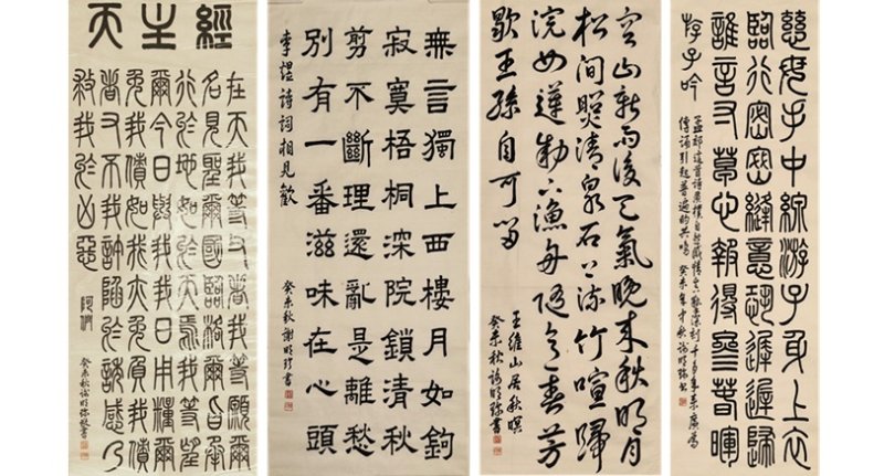 青年時,他以卓越的篆刻才華在藝壇嶄露頭角,曾入選第六屆全國美展篆刻第二名的殊榮,留下了許多精微深刻的作品。壯年時期,常以此作為書法題材,鍾情詩詞意境,將詩情融入筆墨之中,創作出大量富含文人雅韻的詩書合璧之作。受到天主教信仰的啟迪,謝先生晚期將書法長才奉獻於經文習寫,其充滿靈性的作品典藏於多處教堂,如宜蘭礁溪五峰旗聖母朝聖地、臺北市成德天主堂等地,持續感動人心。