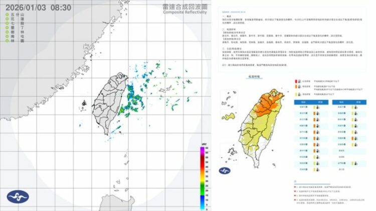 週六(3日)受強烈大陸冷氣團影響,高雄以北、宜、花及金、馬局部空曠地區,及近山區平地將有局部10度以下低溫發生的機率。