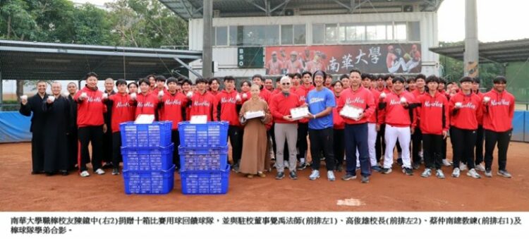 大專盃棒球聯賽八強複賽,南華大學於1月3日迎戰國立體大,除了教職員生到場應援加油打氣,嘉義佛光山圓福寺信眾們也到場力挺,師兄師姐們奮力吶喊為球員加油,球員們也不負眾望,發揮實力拿下複賽首勝,不僅為球隊注入信心,也為後續賽程奠定良好開局,展現南華大學棒球隊的整體戰力與凝聚力。