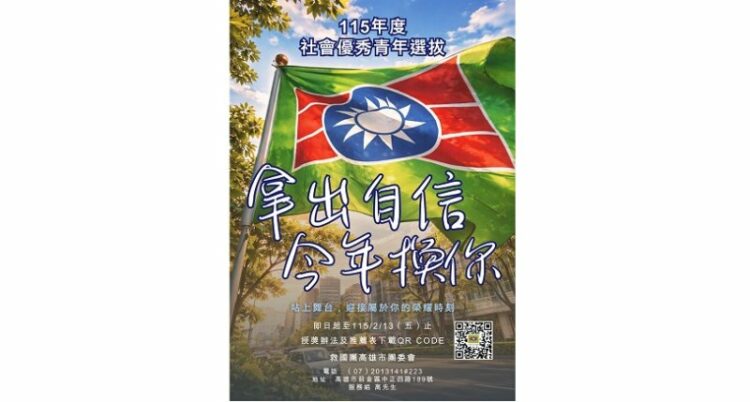 為慶祝中華民國115年青年節,救國團高雄市團委會特辦理社會優秀青年遴選及表揚活動,旨在表揚具備優良德行及傑出事蹟的青年,激勵青年奮發向上,成為社會楷模與國家棟樑。活動報名自即日起至2月13日截止,歡迎高雄市各事業單位、社政團體及機關學校推薦符合條件的優秀青年參加評選,共同見證青年為社會進步帶來的影響力。