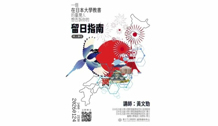 因為喜歡日本而想赴日唸書、工作、甚至定居的人越來越多,但你是否聽過「在日本大學教書」的第一手經驗?臺北市立圖書館留學資料中心1月24日(六)下午2時留日講座,由任教於日本名古屋大學大學院情報學研究科黃文勁助理教授親自分享,從「為什麼選擇日本、而非歐美」、到「為什麼落腳名古屋而不是東京大阪」,帶你了解從申請日本研究所、攻讀博士,到進入日本大學任教的研究歷程。講座將深入比較日本理工研究所與臺灣、歐美的差異,解析博士班的利與弊、日本就業的真實樣貌,以及外國人在日本學界與職場的實際發展可能。