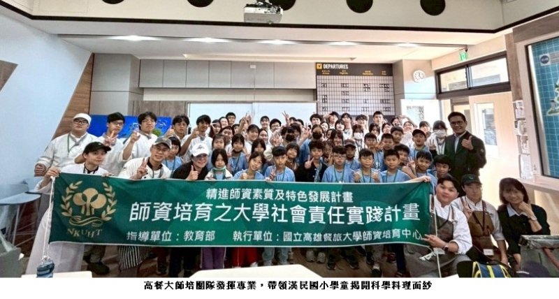 廚房不僅是烹飪場所,更是充滿驚奇的科學實驗室!國立高雄餐旅大學師資培育中心日前策劃「從科學到廚房:揭密美味的黃金秘訣」服務學習活動,攜手高餐大附中與小港區漢民國小,展開一場別開生面科學料理之旅。