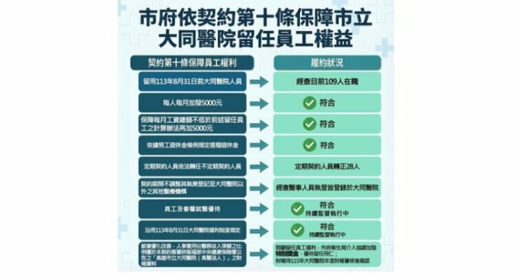 衛生局強調,市府將持續監督院方履行契約責任,確保員工薪水與福利提升,並提升醫療服務績效,守護市民健康。