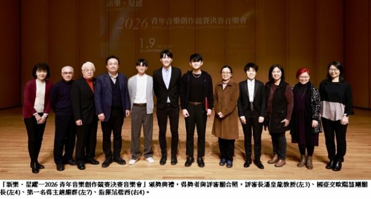 「新樂.星躍—2026 NTSO青年音樂創作競賽決賽音樂會」於1月9日(星期五)晚間在國臺交演奏廳舉行,由國臺交進行四首入選作品的世界首演,並於演出後揭曉競賽結果。經評審委員審慎評選後,由趙繼群以作品《雨霖鈴.上片》榮獲第一名,第二名從缺,另由張凱喻《台灣風俗:魂祭》、趙立瑋《古老的旋律》、洪霽新《屏》並列第三名,同時公布團員票選獎張凱喻《台灣風俗:魂祭》;現場並進行觀眾票選,由洪霽新《屏》獲選,全場觀眾共同見證臺灣新聲的誕生。