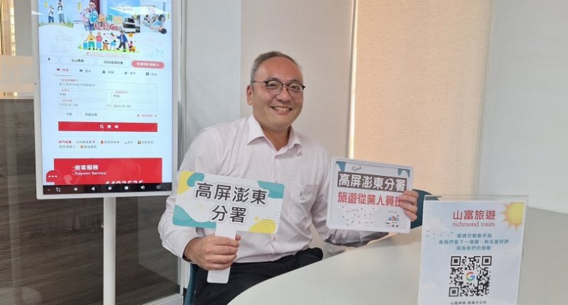 在生物科技產業擔任內勤工作近10年的黃文穎,因公司組織改革而被資遣。但這場危機也成為他跨域的契機,透過參加勞動部高屏澎東分署(簡稱高分署)開辦的「旅遊從業人員班」課程,成功從內勤走到服務第一線,順利進入知名旅行社就業,開啟精彩的職涯下半場。