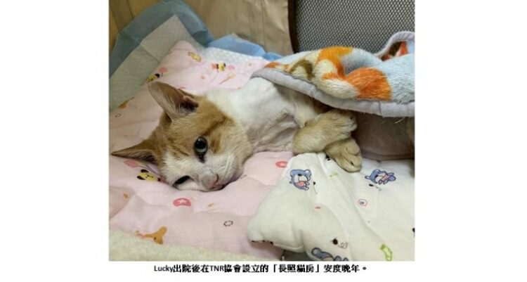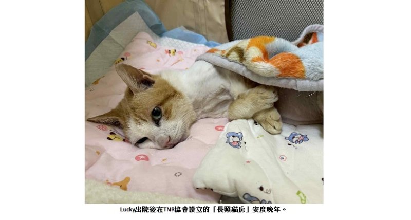 此外,TNR協會亦透過公益勸募,募集民眾捐款投入Lucky的醫療與照護,並設立「長照貓房」,為臺北市長年流浪的高齡、重病或身障街貓提供溫暖的安養空間,讓牠們能有尊嚴地走完生命最後一程。