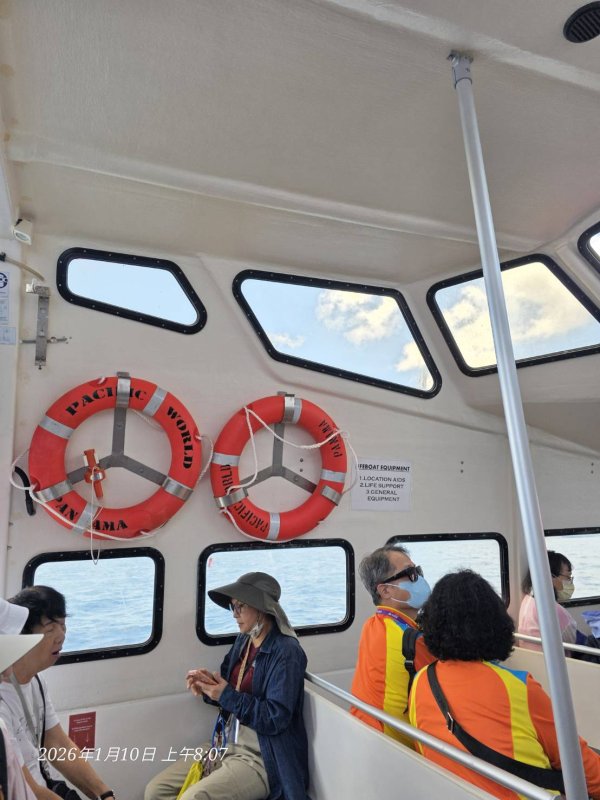 你看到的橘色船是「救生艇」,不是觀光接駁艇。你照片中被吊下海的橘色船隻,外型封閉、顏色鮮橘、上方有艙蓋與編號,這是標準的: