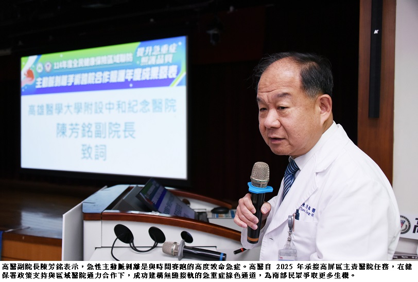 統計顯示,高醫於2025年主責期間,體系內A型急性主動脈剝離手術量較2022年成長47%,急診至手術等待時間較2023年縮短17.5%;2022至2024年間,平均手術死亡率約11%,明顯低於國際資料庫15%至20%的水準,顯示高屏區主動脈剝離聯防機制已由建立階段邁向成熟運作。