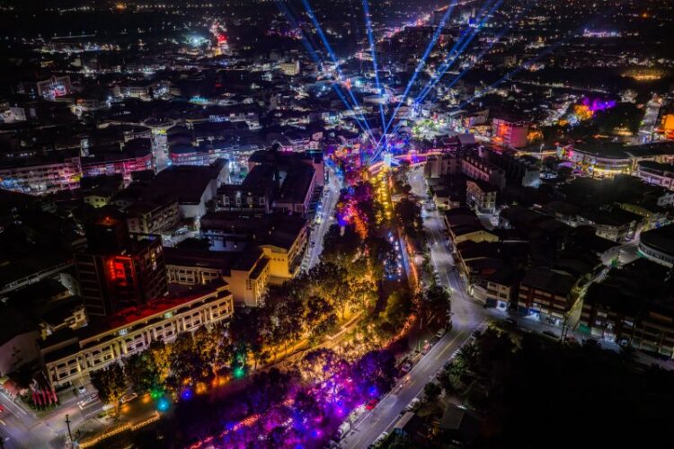 今年屏東燈節萬年溪燈區以「光馳萬年」為主題,將駿馬奔馳化為流動光影,象徵希望與力量。燈區將沿萬年溪畔經仁愛路至萬倉街台鐵橋下廊道,融合9組燈飾、光環境設計及在地文化意象。主燈「騰光」呈現駿馬躍出水面的意象,每30分鐘將展演一次燈光秀,為溪畔夜景增添動感與節慶氛圍。