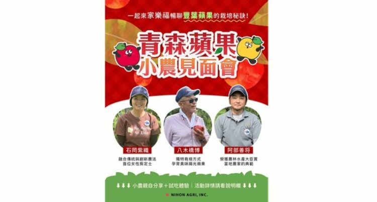 今年適逢蘋果引進青森栽培151週年,青森蘋果農家特地來台分享栽種秘辛,並與消費者近距離交流。活動中將介紹近年日本最受矚目的「豐葉蘋果」,現場提供試吃體驗,並安排互動活動與小禮物。