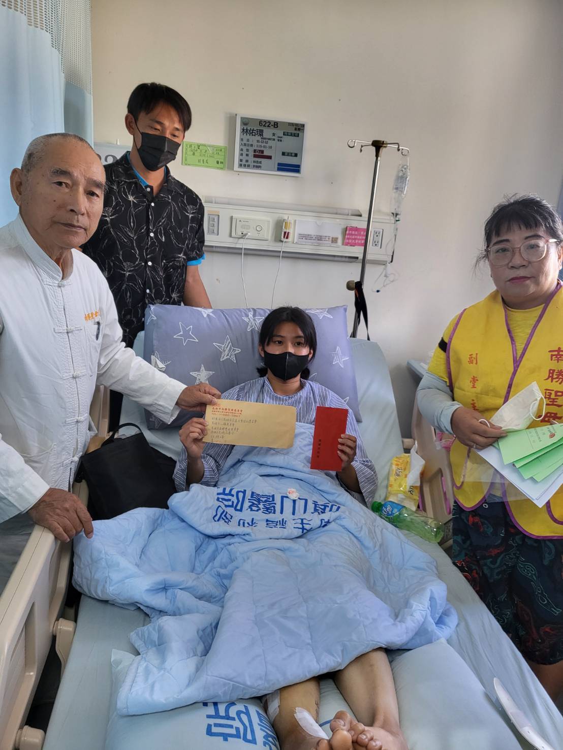 得知情況後,財團法人高雄市宏道社會福利基金會、高雄市慈緣慈善會、高雄市五府千歲慈善會、高雄市心願慈善會、林群峰大德及多位善心人士共同發起關懷行動,並由高雄市南勝聖母慈善會、邱志明理事、蔡師兄及南勝聖母堂副堂主等人,攜帶慰問金,會同杉林區公所課員前往醫院探視案主,表達社會各界的關懷與支持。