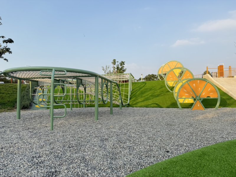 在使用方面,公園遊戲場採分齡設計,請家長務必協助孩子遵守分齡規範。檸檬遊戲區,適合2-5 歲孩童使用;菸葉遊戲塔,僅供5-12 歲孩童使用。近期發現不符年齡的小朋友進入菸葉遊戲塔,或有家長抱著幼兒溜滑梯,超重會讓設施負荷過重、不當使用溜滑梯恐造成墜落或擠壓而骨折,皆十分危險。