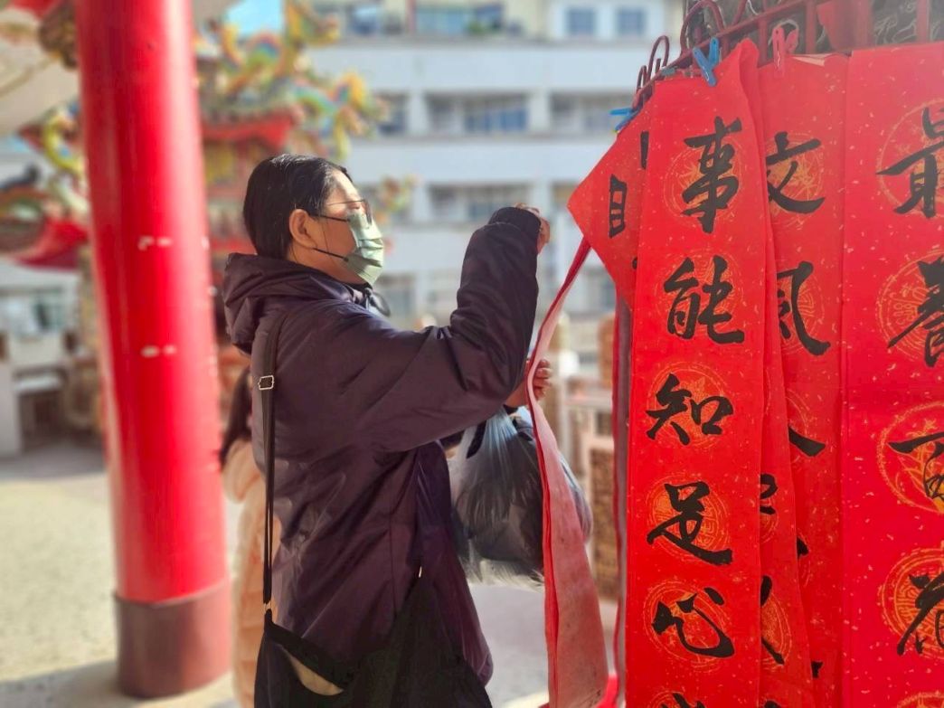 參與揮毫的學生李潓也分享心情表示,第一次幫民眾寫春聯雖然緊張,但看到大家收到作品後開心的表情,讓她覺得非常有成就感,也體會到書法能為他人帶來快樂。