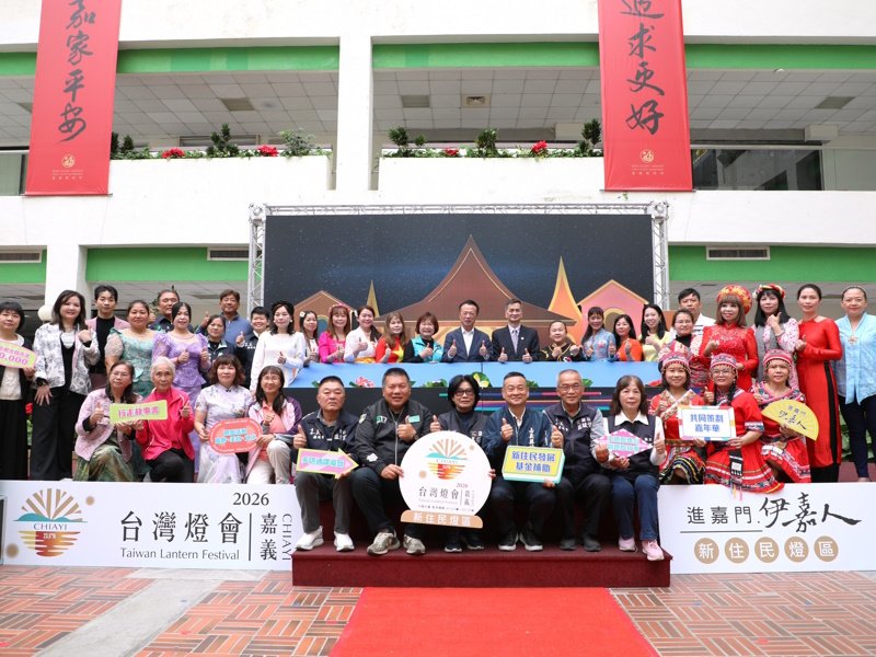 嘉義縣政府今(26)日在縣府中庭舉辦「2026台灣燈會—新住民燈區」宣傳記者會,以「進嘉門・伊嘉人」為主題,透過一場情感豐沛的開場走秀,揭開燈區策展理念。