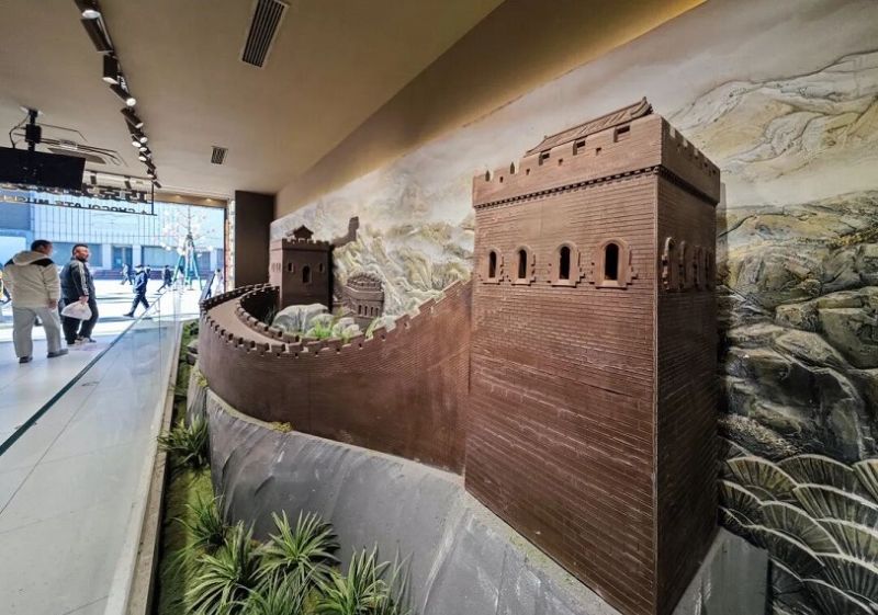 “這有一座巧克力長城!”“全是巧克力做的!”走進食品商場,映入眼簾的巧克力微縮景觀讓人不由得發出驚歎。只見巧克力製造出了萬里長城、天壇祈年殿等地標性建築的微縮景觀,向裏走去,還有以巧克力為原材料製作的著名畫作、合歡瓶擺件、京劇臉譜和紙鳶,引得遊人紛紛駐足拍照。買完巧克力再向裏走去,映入眼簾的是琳琅滿目的文創產品,從老北京絹人到景泰藍擺件,從百家姓掛墜到可愛的毛絨玩具,“一站式”集齊了各式京味兒特色文創產品。