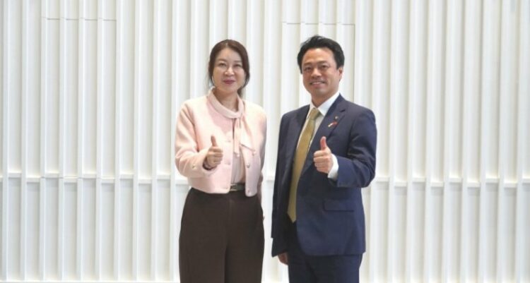 圖/金屬中心劉嘉茹董事長(左)與北海道苫小牧市長金澤俊(右)合影