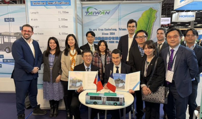 展會期間,氫谷動能的整車解決方案吸引多家歐洲氫能設備製造商、高壓儲氫系統業者及公共運輸營運單位高度關注。在駐法國台北代表處與巴黎台灣貿易中心協助下,雙方就氫能公共運輸導入模式、供氫基礎設施整合、車輛安全驗證流程及歐盟市場準入機制等議題展開深入交流。