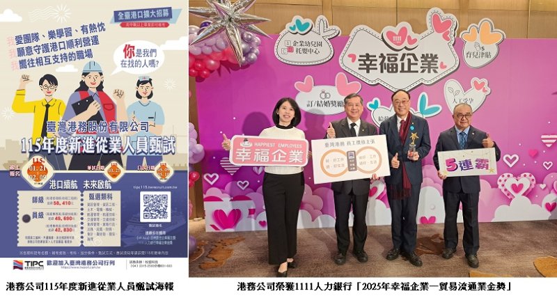 港務公司長期致力打造「相互支持、安心發展」的職場文化,營造讓同仁能夠「做好工作、過好生活」的幸福職場,並榮獲「友善家庭、人才發展、健康職場、幸福企業」等多項相關獎項肯定。港務公司期待每一位加入的夥伴,都能以身為港務人為榮,在團隊中成長、在專業中累積實力。