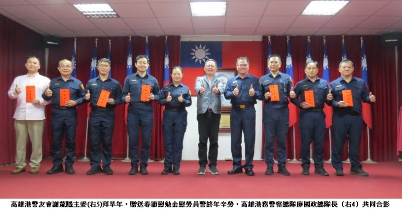 高雄港務警察總隊總隊長廖國政表示,春節連續假期期間,各外勤單位員警將持續投入治安與安全維護工作,加強確保港區運作順暢與秩序安定。特別感謝高雄港警察之友會及謝龍隱主委長期以來的支持與鼓勵,全體同仁將持續秉持專業與熱忱,守護港區安全,讓民眾安心過好年。