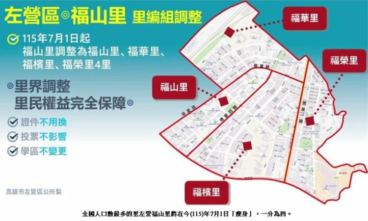 全國人口數最多的高雄市左營區福山里,將於今年七月一日「瘦身」,一分為四,有里民因新的里名不好聽要求改名而鬧上新聞,事實上,這個里不只是全國人口數最多,而且是世界最大,該里人口數甚至在全球195個主權國家都擠上排名,至少贏過三、四十個國家的人口數,「大到讓小國無法想像」。這是一項隱性的「高雄之光」,但這塊招牌將在馬今年七月一日卸下。