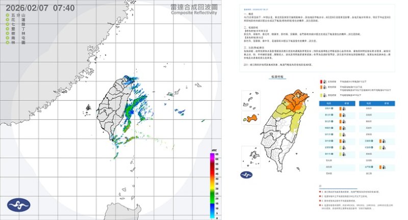 雖冷空氣後期水氣減少,但高山低溫條件明顯,海拔三千公尺以上高山、北部兩千公尺以上及東北部一千五公尺以上山區仍可能出現短暫降雪或霰,並伴隨結霜、霧淞風險。