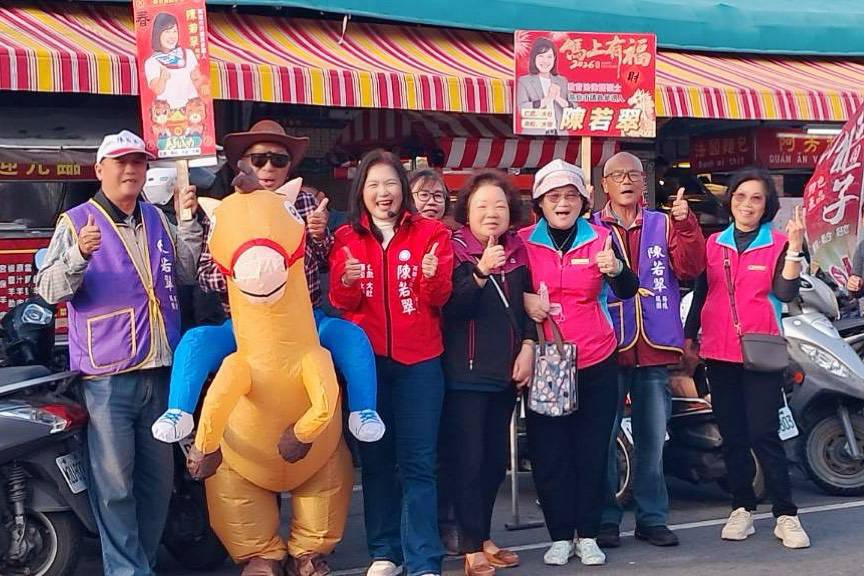 2月7日下午,陳若翠現身仁武登發市場,首次亮相的「幸福加馬(碼)」成為全場焦點。由工作人員戴上牛仔帽、扮成牛仔並穿著馬造型玩偶服,在市場中與民眾互動揮手致意,吸引不少市民與小朋友圍觀拍照,歡笑聲不斷,祝賀聲此起彼落,象徵「財源滾滾、攏馬賺錢,過好年」。