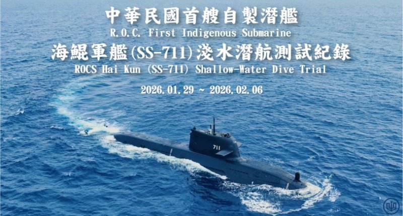 波新聞─李至文/高雄 台灣國際造船股份有限公司(台船公司,股號:2208)承造的「海鯤軍艦」,近兩週依據測試程序書,已完成四次「淺水潛航」測試作業,相關測試紀錄影像於今(8)日對外公布,供社會各界點閱了解潛艦國造最新進展。 台船公司表示,造艦團隊後續將持續進行各項系統調校與檢整作業,待確認符合安全條件並完成整體評估後,將依既定時程安排後續潛航測試。台船公司也期盼國人持續給予支持,共同見證潛艦國造計畫穩健推進。 圖/台船提供