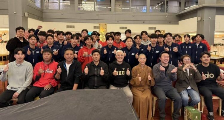 南華大學駐校董事覺禹法師亦於致詞中表達熱烈歡迎,並誠摯邀請檀國大學於南華大學球場養護工程完成後,再度蒞臨進行移地訓練與交流,共同見證校方在硬體設施與訓練環境上的持續精進。期許南華大學持續秉持創辦人星雲大師「體育弘法」的精神,以體育作為推動國際交流的重要橋梁,透過跨國訓練、競技與教育合作,朝向打造具備國際競爭力的「職業級棒球訓練基地」邁進,培育兼具專業實力與國際視野的頂尖運動人才。