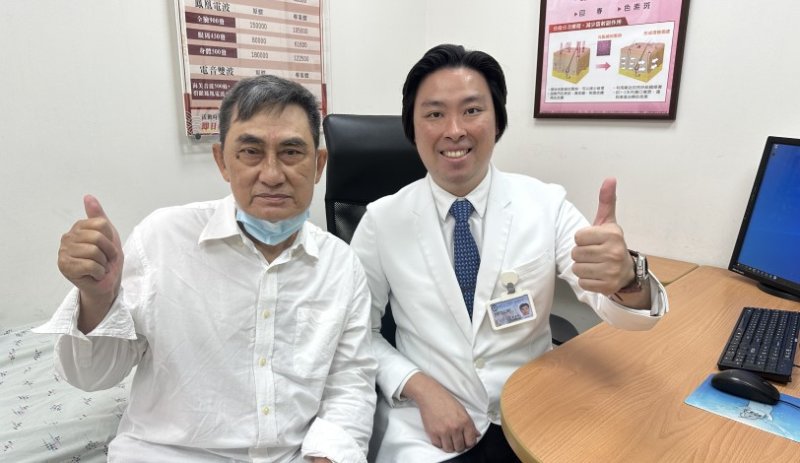 圖/看見患者重新找回笑容,是醫師最大的成就感,曾經深受背部與下肢劇痛所苦、走路一跛一跛的患者,在接受小港醫院神經外科劉要儒醫師治療後,疼痛大幅緩解,開心地比出大拇指,感謝劉醫師讓他能重回正常工作與生活。