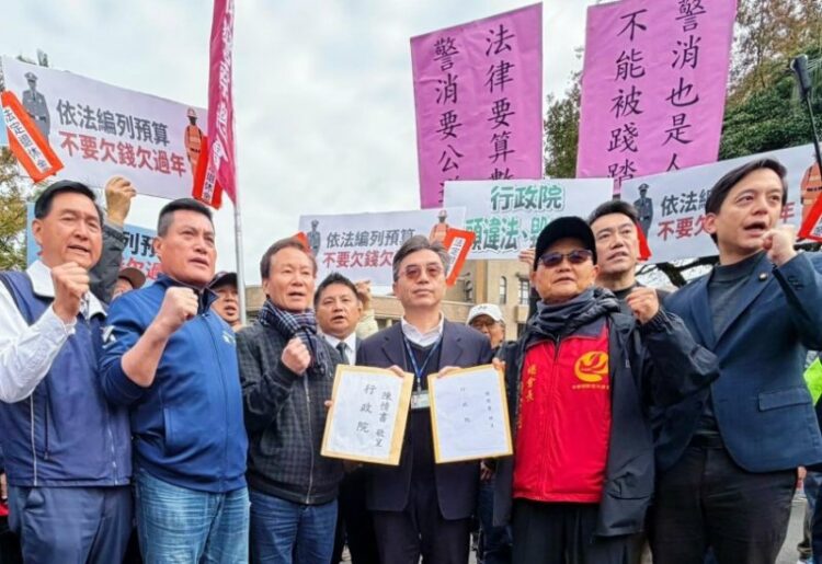 立法院早已三讀通過《警察人員人事條例》修正案,明文提高退休警消所得替代率上限至80%,然而行政院以聲請釋憲為由,至今未編列相關預算,導致新法形同具文。為爭取法定權益,中華民國退休警察人員協會總會與退休消防人員協會總會,於9日集結上百人赴行政院陳情,並在國民黨立委吳宗憲、林沛祥等人協助下,發起國內史上罕見的大規模集體訴訟,目前已有約6000名退休人員響應,要求政府依法行政,落實照顧基層的承諾。