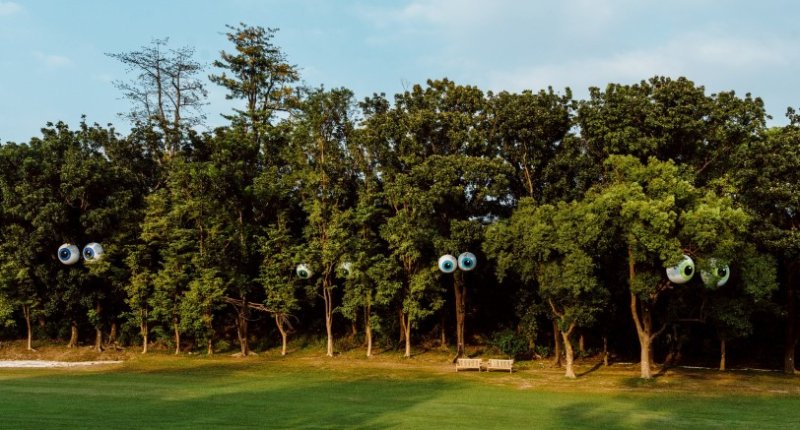 圖/英國藝術家痞子路克(Filthy Luker)的作品《果嶺大眼睛》,彷彿森林長出了生動的表情