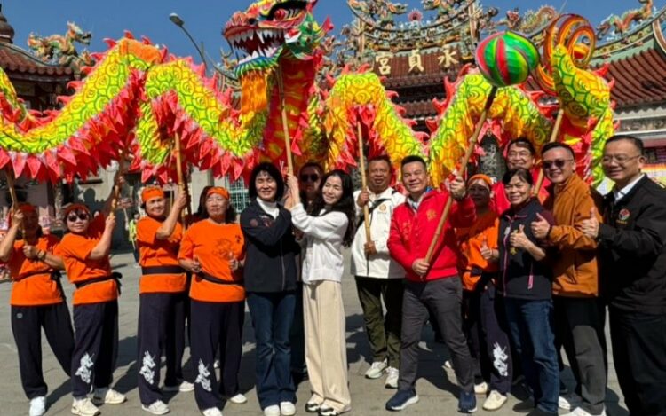 圖:苗栗縣副縣長陳美琦、副議長(永貞宮主委)張淑芬等嘉賓體驗舞龍/林冬生 攝影
