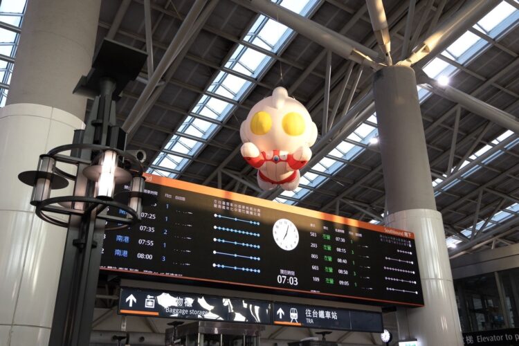 高雄市政府觀光局攜手 台灣高速鐵路股份有限公司,在 高鐵左營站 大廳列車時刻表上方,驚喜亮相超萌Q版氣膜裝置&mdash&&mdash&超人力霸王空中翱翔迎賓,巨大又吸睛,氣勢滿滿卻又可愛到不行。