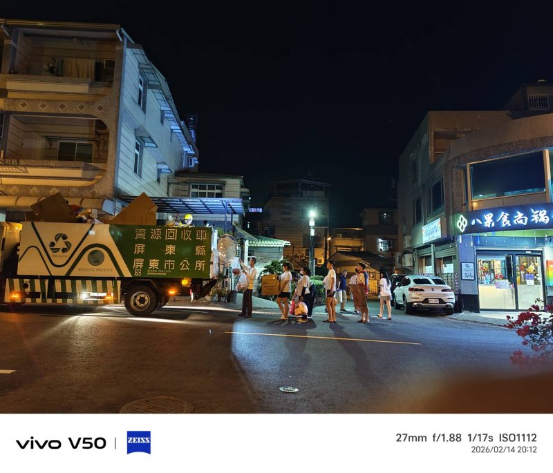 西洋情人節,回收車因為春節回收量太大,車輛出動兩個,平時星期六回收,一個定點5分鐘可以處理,今天忙三倍,排隊到15公尺遠。