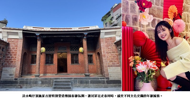 新北市立淡水古蹟博物館將於明(18)日起開館,5天連假強力推薦農曆春節「跳古蹟」微健身路線,完整攻略以淡水崎仔頂施家古厝為首站,依序為淡水日本警官宿舍、淡水木下靜涯舊居、滬尾小學校禮堂、得忌利士洋行、淡水街長多田榮吉故居、前清淡水關稅務司官邸(小白宮)、淡水紅毛城,末站為滬尾礮臺。9大古蹟全程共計3公里,可順走、逆行、自由增減站點,適合親子、好友或獨旅走春,輕鬆漫遊淡水百年歷史。其中,搭配施家古厝及警官宿舍特色,特別營造傳統春節及日本新年氛圍,讓民眾在走春同時,感受不同文化交織的年節風情。