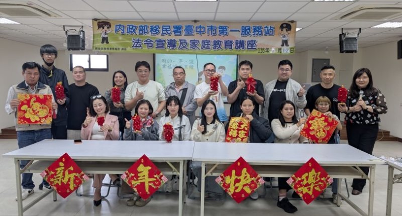 臺中市第一服務站主任王驥表示,希望透過結合傳統節慶文化與家庭教育的方式,協助新住民朋友更深入的認識臺灣社會民俗文化,也讓不同文化背景的家庭,在日常生活中找到屬於自己的幸福節奏,新的一年祝福大家「馬」上幸福,馬年行大運,馬到成功。