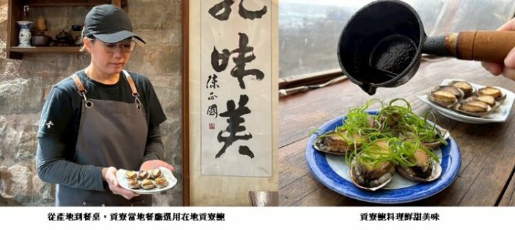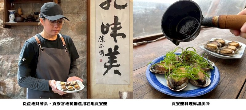 貢寮鮑為東北角貢寮地區沿岸海域養殖九孔鮑及黑盤鮑的統稱,從濱海台2線往貢寮前行,沿路便能看見建於沿岸的潮間帶養殖池,隨著海水潮汐起落帶來的純淨活水。養殖戶們投餵富含營養的天然海藻,完全不使用任何藥物,提供貢寮鮑乾淨無虞的生長環境並精心照料。位於貢寮的「92K週末食堂」老闆娘李小容表示,貢寮鮑是貢寮在地的重要產業,潮間帶養殖池有天然的潮汐換水,還有海浪拍打讓海水溶氧充足,使得貢寮鮑肉質特別飽滿Q彈,春節期間正值貢寮鮑盛產季節,是品嚐貢寮鮑最佳時機。簡單烹煮方式即能品嚐最道地的鮮甜好滋味,將新鮮貢寮鮑清洗處理乾淨後,直接帶殼放入蒸熟,再將滾燙油淋到貢寮鮑及蔥絲上,入口後使鮮味直擊味蕾。此外,鹽烤料理方式也是呈現美味貢寮鮑的好選擇,將新鮮貢寮鮑清洗乾淨,置於高溫燒烤,表面微微焦香、邊緣捲起,鎖住滿滿的海味,入口時展現貢寮鮑最原始的鮮甜,歡迎大家前來品嚐。