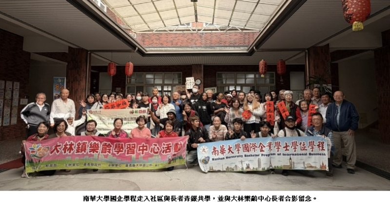 南華大學國際企業學士學位學程於日前展開一場別具意義的校外教學活動。透過高等教育深耕計畫 HUB C 分項所支持之大學社會責任實踐行動(USR),在廖英凱教授帶領之下,來自印尼、印度、史瓦帝尼、越南的國際生與本國籍學生共38位青年,走入嘉義縣大林樂齡學習中心,與在地長者展開一場深度共學。這項名為「爺奶當網紅,青春來助攻:青銀共創樂齡新價值」的計畫,為南華大學114年高等教育深耕計畫的重要指標之一,展現高等教育回應高齡社會、落實社會實踐的創新行動力。