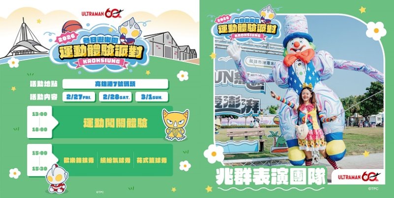 運發局長侯尊堯表示,今年市府以「超人降臨港都」為故事主軸,結合港灣景觀,規劃主題裝置、燈光秀、見面會及碼頭樂園等互動展演,打造專屬高雄的冬日「超人慶典」。運發局特別融入超人力霸王IP,將桌上冰壺、射箭、跆拳道、水彈槍等運動設計為闖關遊戲,並設置怪獸九宮格、彈跳英雄挑戰、排球少年及英雄投籃等12項趣味體驗,同時開放迷你足球與匹克球自由體驗區,讓民眾在遊戲與運動中享受互動樂趣。