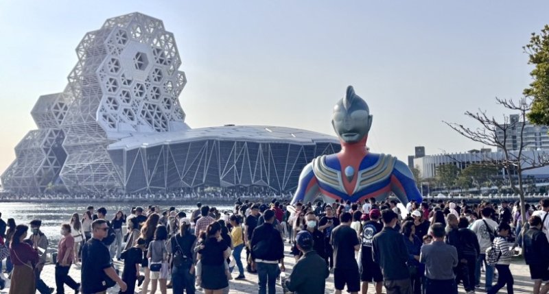 圖/超人力霸王降臨港都愛河灣,現場吸引滿滿人潮