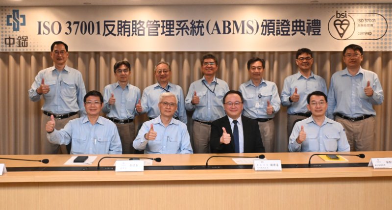 黃董事長說明,企業誠信廉潔為國際性共通議題,根據世界經濟論壇(World Economic Forum, WEF)及相關機構研究顯示,賄賂與貪腐行為會顯著增加企業約10%商業營運成本,為對齊國際反賄賂標準,展現針對貪腐賄賂行為之零容忍態度,中鋼以跨部門推動方式導入反賄賂管理系統,建立賄賂風險評估、盡職調查與管控程序機制,確認中鋼管理程序符合ISO 37001的嚴謹架構,也逐一檢視再優化相關制度,將誠信經營的理念與文化落實於日常作業。BSI東北亞區謝君豪董總則表示,BSI團隊在驗證過程見證了中鋼管理階層對於公司反賄賂管理系統的充分支持,也對中鋼團隊在導入過程的積極行動力感到印象深刻,相信此制度能為中鋼推動轉型工作立下強韌且堅實的基石。