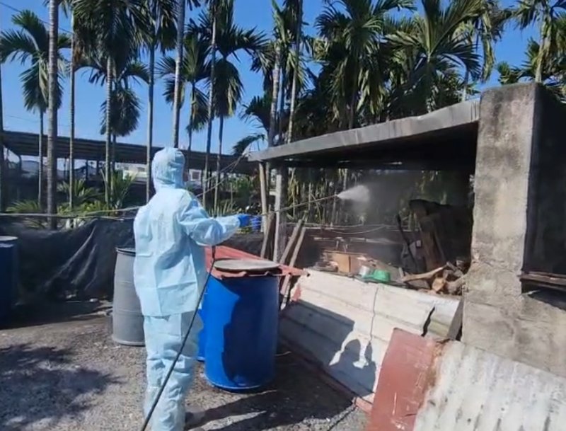 縣府表示,本次查獲李姓養豬場,飼養頭數為肉豬100頭,動物防疫所於當日採集豬隻血液和廚餘桶內肉塊等檢體,送驗屏科大初篩實驗室,非洲豬瘟病毒核酸檢測結果皆為陰性,確認無疫病傳播風險,現場立即開立移動管制書,啟動畜牧場與周邊道路清消,以全面提升生物安全措施,降低任何傳播可能風險。