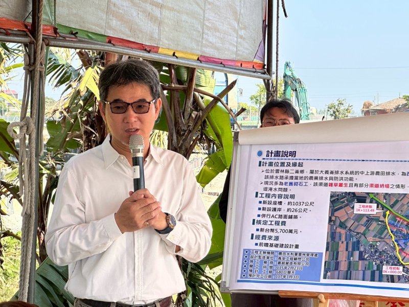 農田水利署副署長林國華指出,工程內容包括新設約1,037公尺座槽及26公尺強化護岸,拓寬通水斷面、提升通流能力,同步刨鋪AC路面,改善併行農路通行品質,在強化防洪功能同時兼顧地方交通需求。