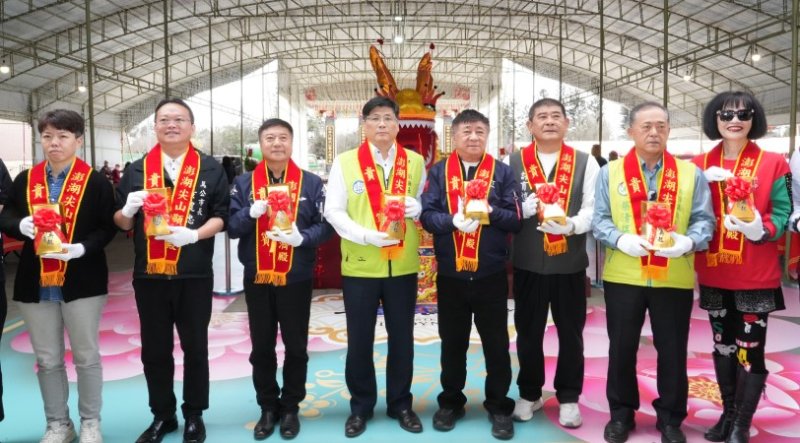 澎湖尖山顯濟殿25日上午於殿前廣場舉行「東山再起金磚龜-開光啟靈」植福祈安科儀,副縣長林皆興代表縣府出席儀式,為新的一年寫下祝福語,並與各界貴賓一同祈願地方平安順遂、百業興隆。