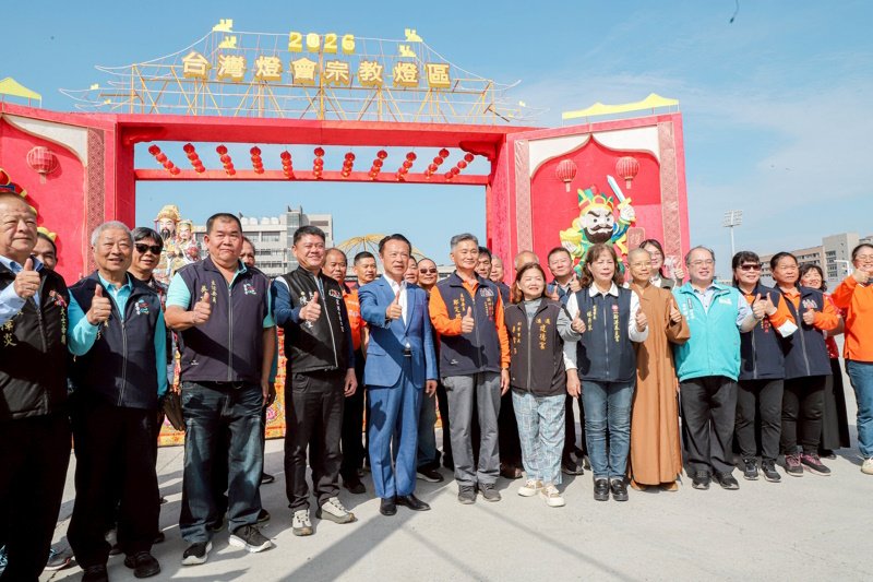 嘉義縣長翁章梁今(25)日上午前往「2026台灣燈會」宗教燈區視察,與各宗教團體代表一同祈福祝禱,並逐一巡覽各燈座整體呈現與動線規劃,欣賞結合信仰意象的創作。
