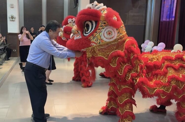 中華醫大「馬躍新春.萬馬奔騰」丙午馬年新春團拜,由陸軍第八軍團三九化學兵群舞獅社團的「祥獅獻瑞、福臨華醫」舞獅表演揭開序幕,中尉軍官郭柏陞帶領10位國軍弟兄舞動兩隻祥獅環繞會場,搭配陣陣鼓聲,時而擺頭搖尾、時而跳躍翻騰,動作唯妙唯肖,傳達活力與希望的同時,祈願為中華醫大帶來吉祥與祝福,董事長陳智文和校長李碧娥代表學校,送上開運紅包和感謝狀表達感謝。
