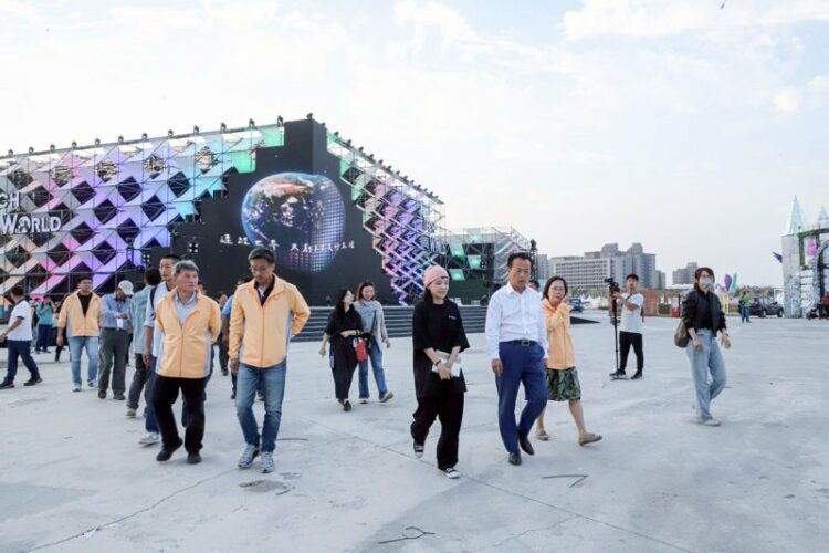 場勘過程沿途檢視無人機展演舞台周邊動線與觀賞視野,並巡視Techworld館、智慧城市燈區、環保燈區、大遊行觀禮台及企業光廊等重點區域,了解施工收尾狀況、環境整潔與人流導引動線,請相關單位持續強化管理,在燈會期間維持服務品質。