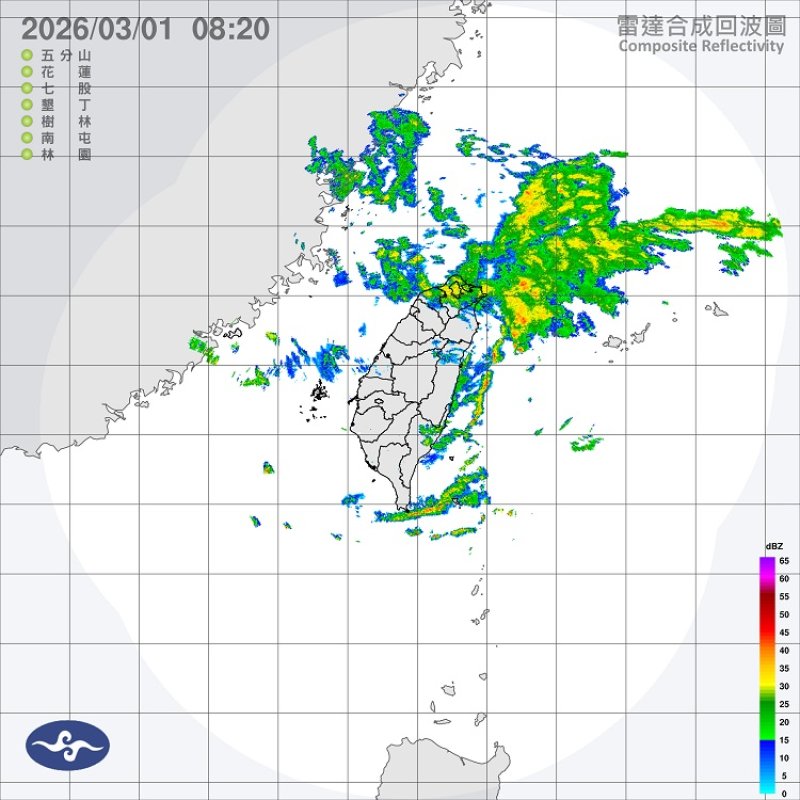 週二(3日)東北季風增強,各地天氣轉涼;鋒面通過及華南雲雨區東移,水氣較多,西半部地區有短暫陣雨或局部雷雨。