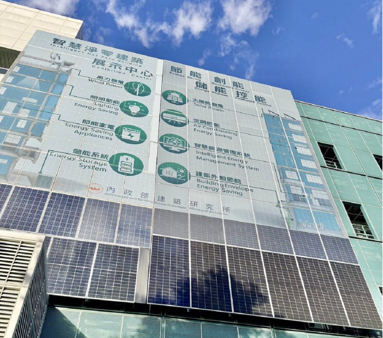 睿田能源長期深耕建築整合型立面彩繪光電技術,強調淨零建築不僅是減碳工程,更應納入防護思維。透過將太陽能模組融入建築外牆、雨遮與遮陽構件,形成兼顧美學與發電功能的彩繪光電立面,不僅能提高就地發電與自發自用比例,也可減輕集中式電網負擔。針對具有安全與外觀規範需求的敏感場域,公司亦發展「迷彩光電」低可視化設計理念,使能源設備在符合景觀與安全前提下,強化分散式供電能力。